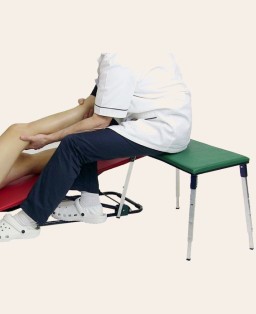 Useful in many postural treatments, supporting both the patient and the therapist. Even in the closed chain postural quadrupedia, the large stool allows you to modulate the tensions of the muscle chains adequately thanks to its adjustable height.
