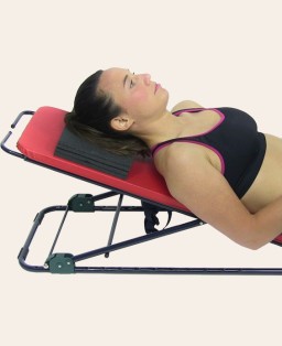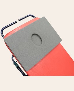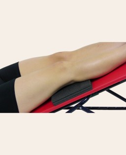 High consistency polyurethane foam pads (made by Postural Service). Created in the most suitable size for use, these accessories can have various functions. Based on the patient's condition, the condition of the neck and the chewing surface in relation to the support surface, the thicknesses can be added, decreased or eliminated. The central hole houses the support of the occiput, making it extremely easy to place the head in the center of Pancafit® in a rigorously decompensated manner. Of fundamental use in the treatment of the transverse chain, the shims can be used as wedges or shims under the popliteals (see photo 4). Their consistency and shape allow the force and impact of the knee to be distributed so that it keeps the shoulder decompensated.