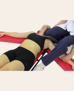 Spessori in poliuretano espanso di alta consistenza (realizzati da Postural Service). Creati nella dimensione più confacente l’utilizzo, questi accessori possono avere svariate funzioni. In base alla condizione del paziente, alla condizione del collo e al piano masticatorio in relazione al piano di appoggio, gli spessori possono essere aggiunti, diminuiti, eliminati. Il foro centrale ospita l'appoggio dell'occipite, tale per cui risulta estremamente facile collocare la testa al centro di Pancafit® in modo rigorosamente decompensato. Di fondamentale utilità nel trattamento della catena trasversa, gli spessori possono essere utilizzati come cunei o spessori sotto poplitei (vedi foto 4). La loro consistenza e la loro fattezza consentono infatti di distribuire la forza e l’impatto del ginocchio affinché questo mantenga la spalla decompesata.