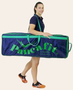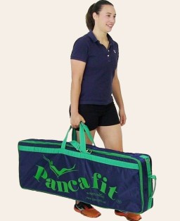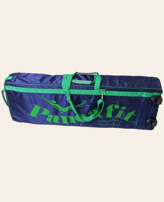 Borsone pensato per trasportare Pancafit® in maniera semplice ed efficace, grazie alla pratica tracolla, alle maniglie e alle ruote. Di immediato utilizzo, questo accessorio si distingue inoltre per la sua funzione protettiva. Risulta perciò adatto anche al trasporto aereo di Pancafit®. Interamente lavabile, il borsone è disponibile in blu con i profili e il nome serigrafato Pancafit® in verde.