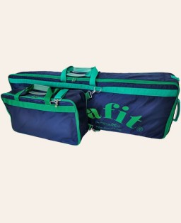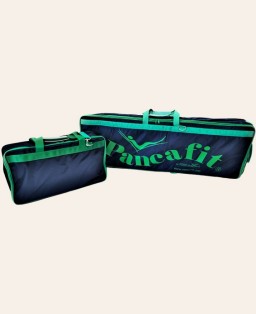 Mini bag per il trasporto degli accessori di Pancafit®, appositamente studiata nella forma e nelle dimensioni per accogliere in particolare lo sgabello grande. Questo indispensabile accessorio è dotato di pratici ganci grazie ai quali è possibile trasportarlo con praticità insieme al borsone porta Pancafit®. Interamente lavabile, la mini bag è disponibile in blu con i profili in verde.